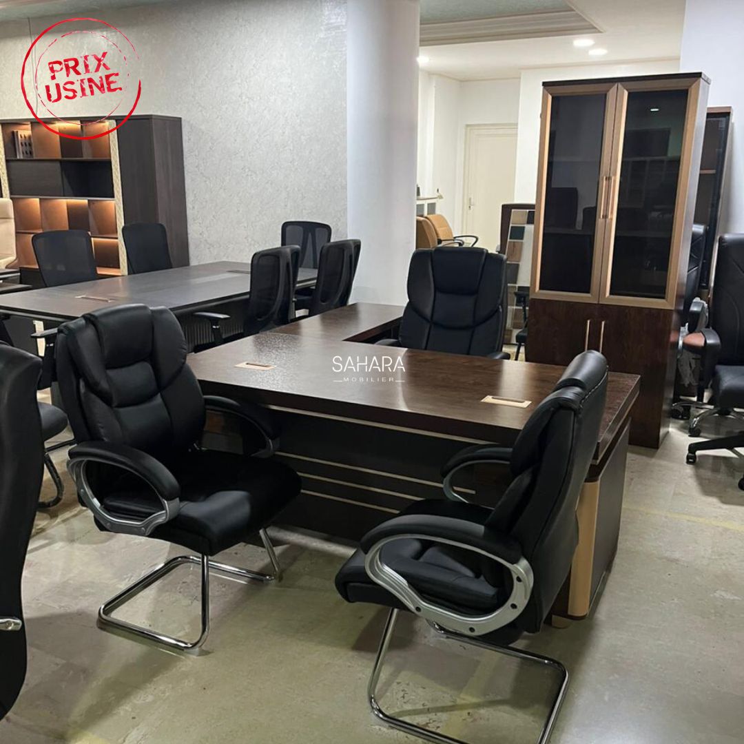 Bureau de Direction : Le plan de travail est fabriqué en panneau mélamine de 60mm d'épaisseur, avec chants en ABS antichoc 2mm en PVC , Le...