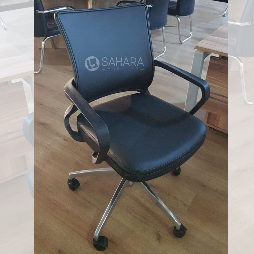 Descriptif technique pour ce fauteuil pivotant Sahara Mobilier : Modèle : Fauteuil design moderne, idéal pour bureau ou espaces d'accueil. Structure : Base en métal chromé,...