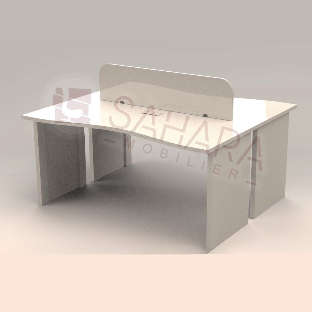 Dimensions et Caractéristiques Techniques : Forme du Plateau : Plateau en forme de "L" inversé, permettant une meilleure gestion de l'espace pour deux postes de travail....