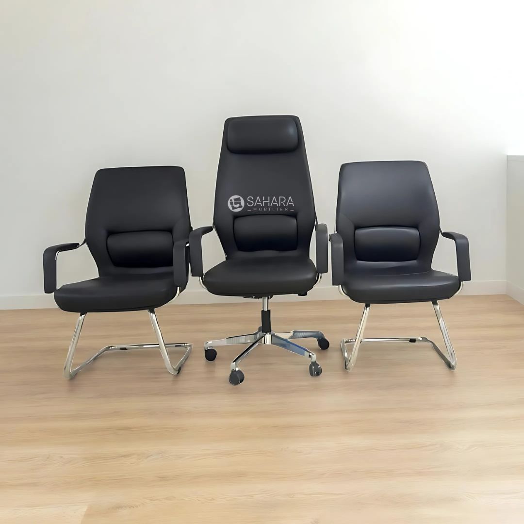 un fauteuil président 2 fauteuils visiteur couleur Noir