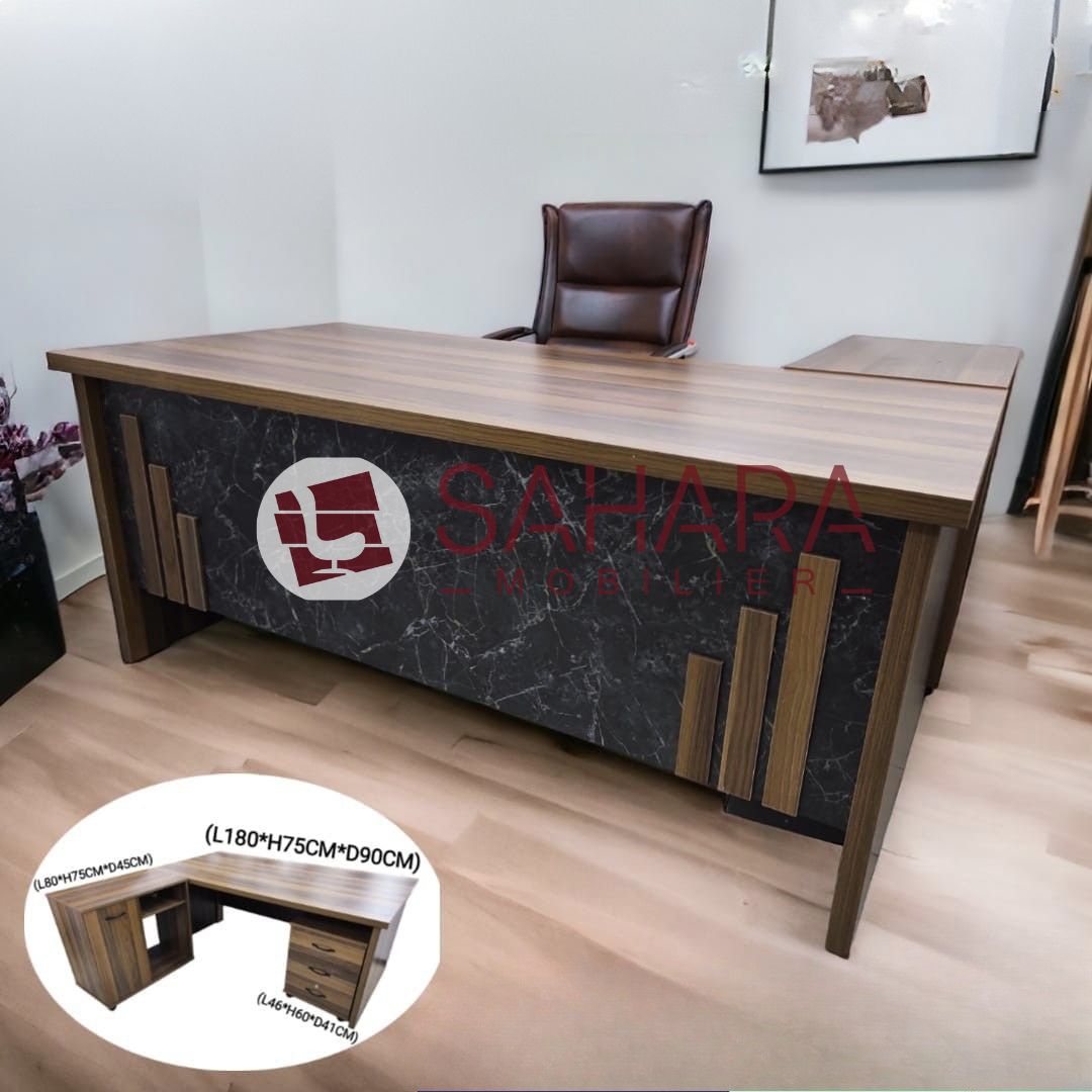 Bureau : L2MxD1Mx75CM Retour : L80xD45x75CM Caisson : L41xD46x60CM Bureau de direction moderne avec finitions haut de gamme Le Bureau de Direction Marinid se caractérise par...
