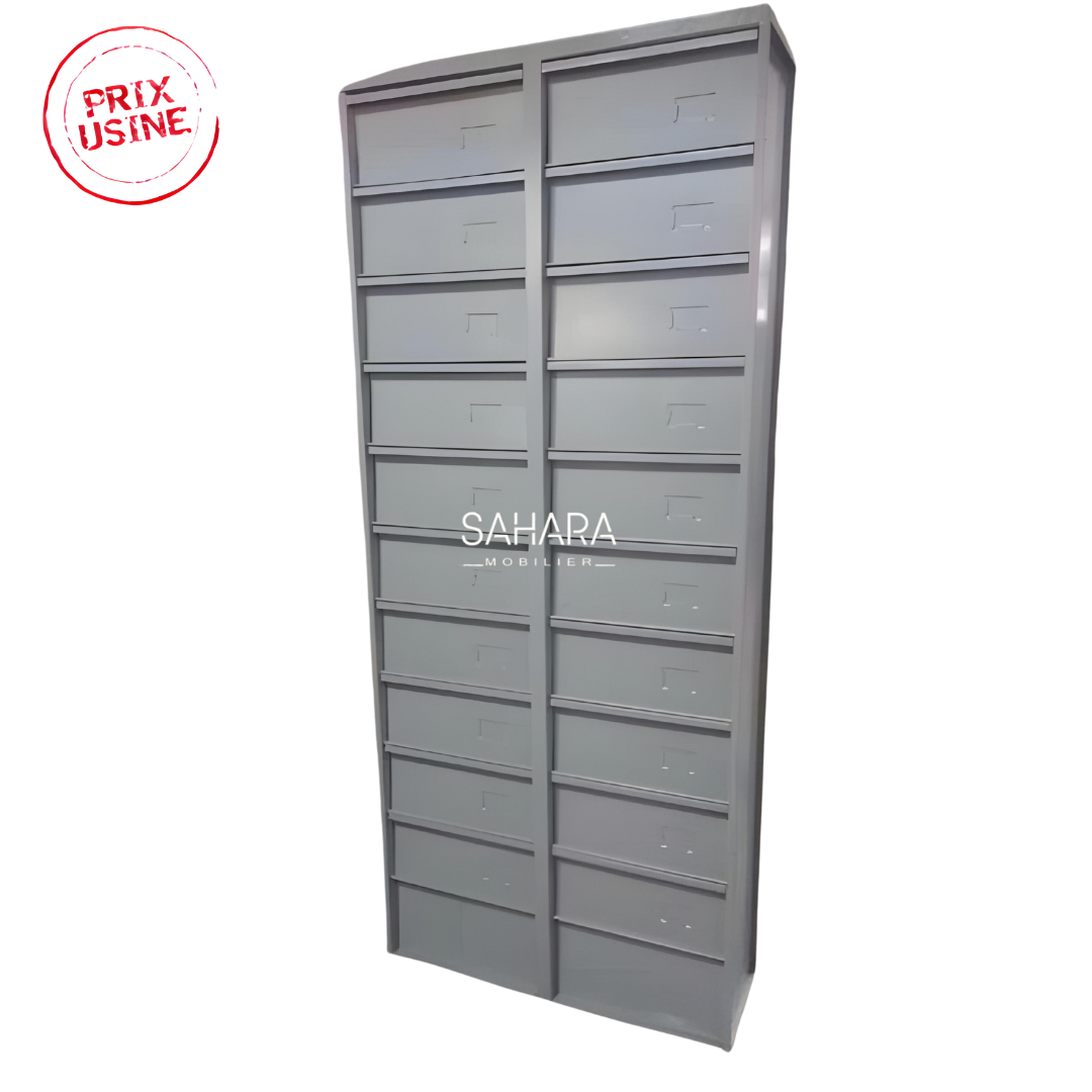 Casier à clapet de 20 cases meuble métallique d’une colonne en tôle d’épaisseur 7/10eme colonne est constitué de 10 cases hauteur : 198 cm. largeur : 84 cm. Profondeur...