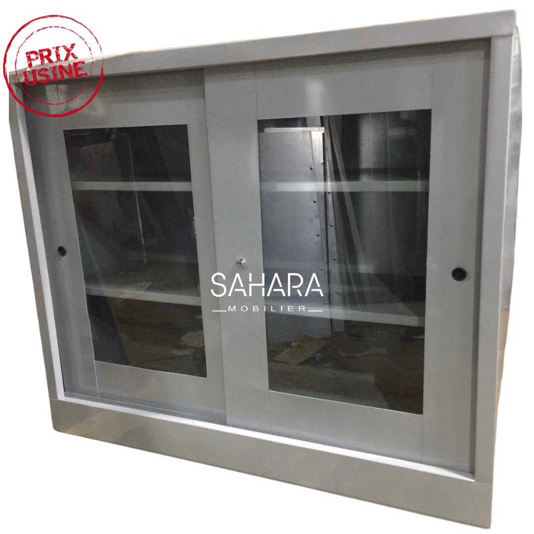 Armoire métallique vitrée Structure monobloc soudé en usine • Peinture époxy • Portes coulissantes • Portes vitrées en verre trempé • Fermeture par serrure enfoncée (jeux...