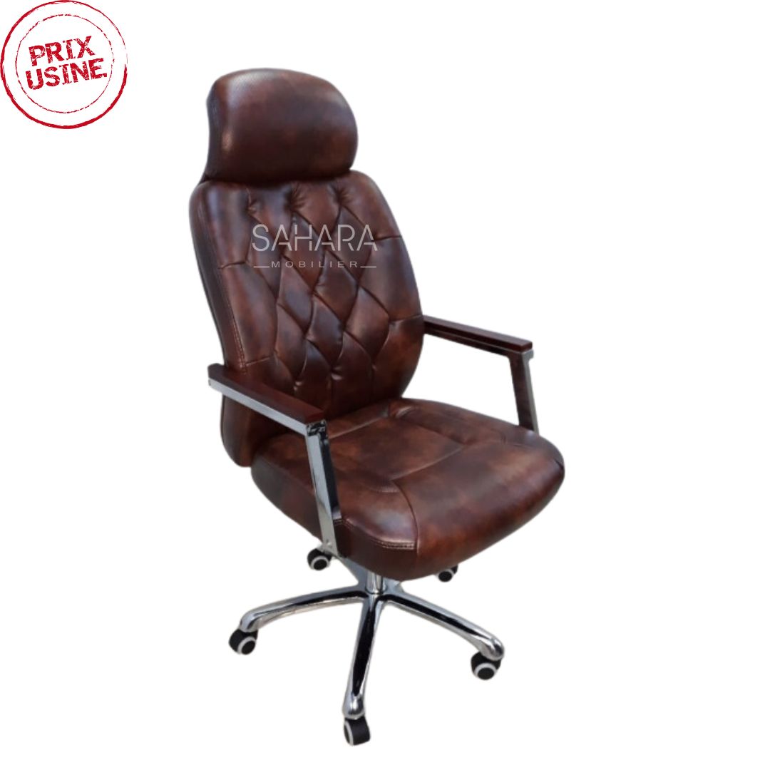 Fauteuil président klasik réf b3318Fauteuil en simili cuir Marron Siège en simili cuir avec dossier haut et têtière intégrée Assise et dossier en mousse de haute densité revêtue en simili cuir avec... 2,190.00 dh2,190.00 dh 2,590.00 dh/