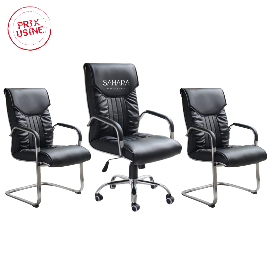 Fauteuil Tournant (Dossier Haut) - Le dossier et L'assise en simili cuir composé de mousse de polyuréthanne haute densité. - Un Système de réglage en hauteur de...