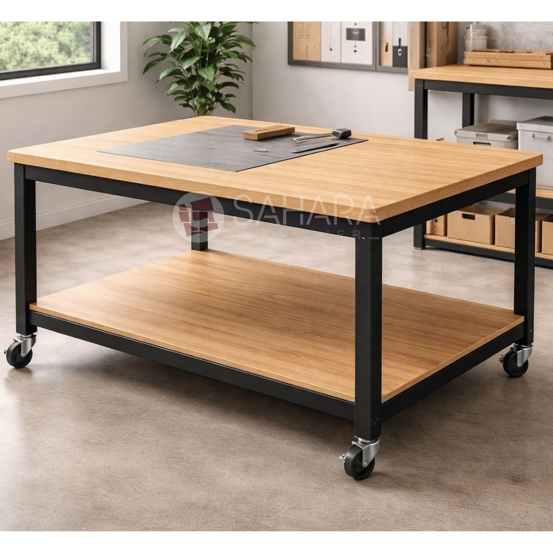 Caractéristiques techniques : • Dimensions : 100 cm x 150 cm• Structure : Cadre métallique avec plateau en bois• Roues pour faciliter le déplacement•...