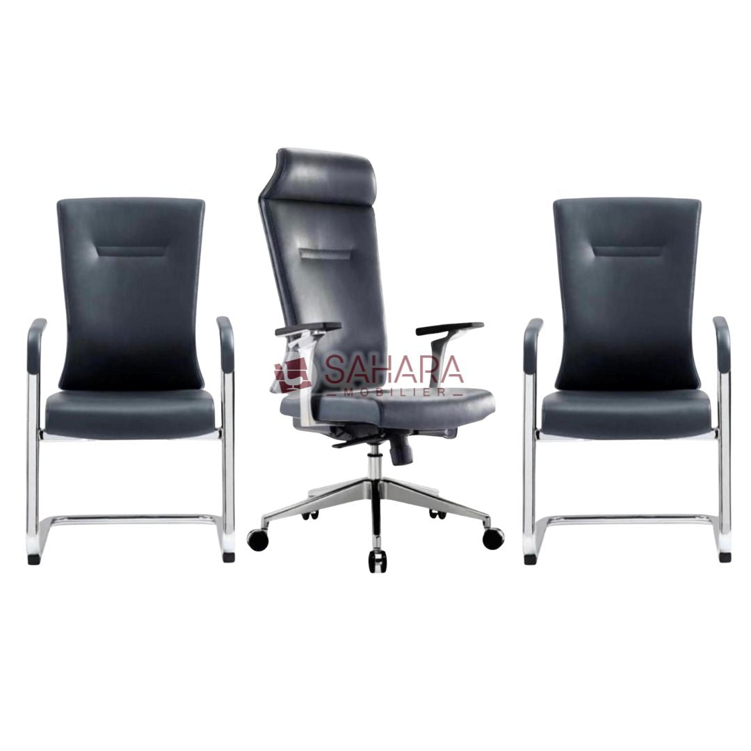 Fauteuil de Direction et Chaises Visiteurs (Gris) Fauteuil de Direction : Design : Ergonomique avec un dossier haut pour un confort optimal. Structure : Base chromé...