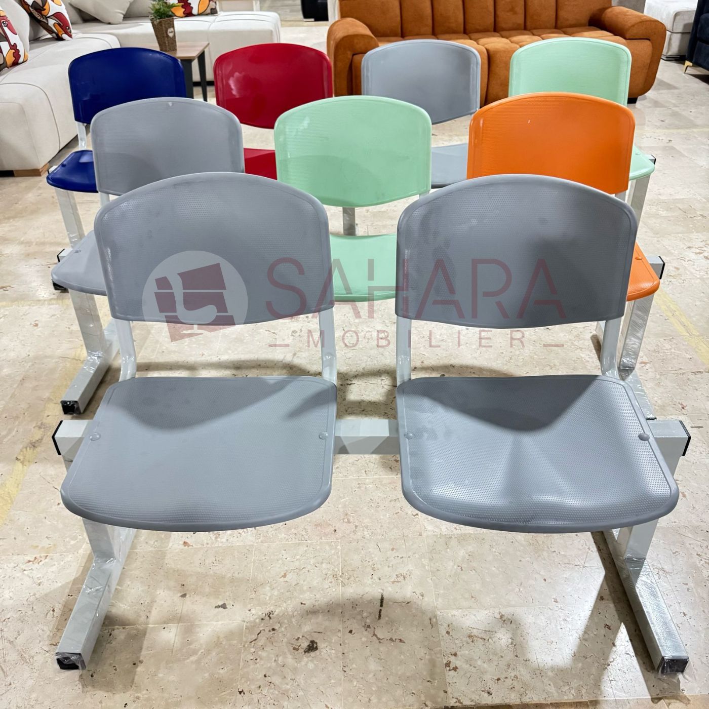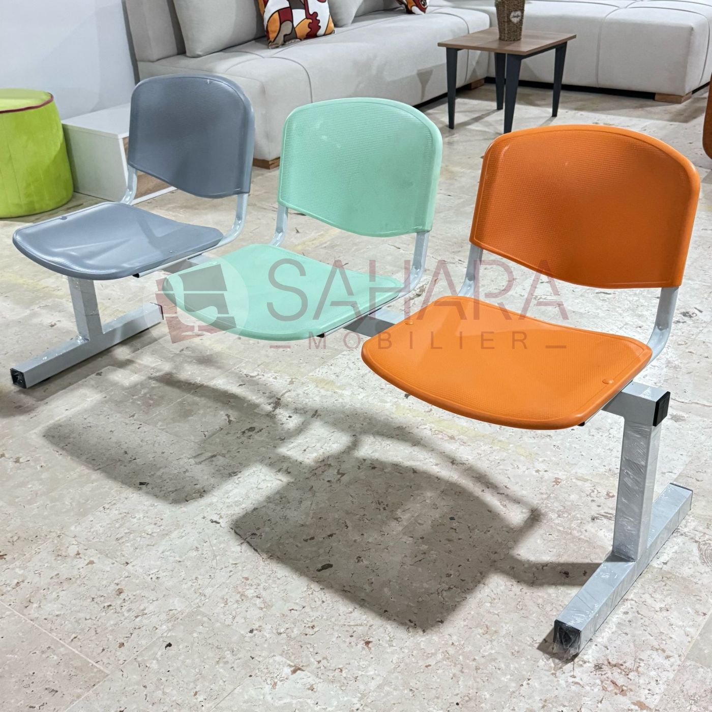 Siège sur poutre avec assises et dossiers polypropylène.- Structure métal profil semi-ovale époxy noir..