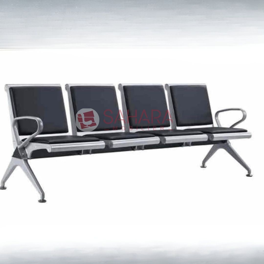 dossier et assises en métal chrome sur poutre métallique inoxydable.