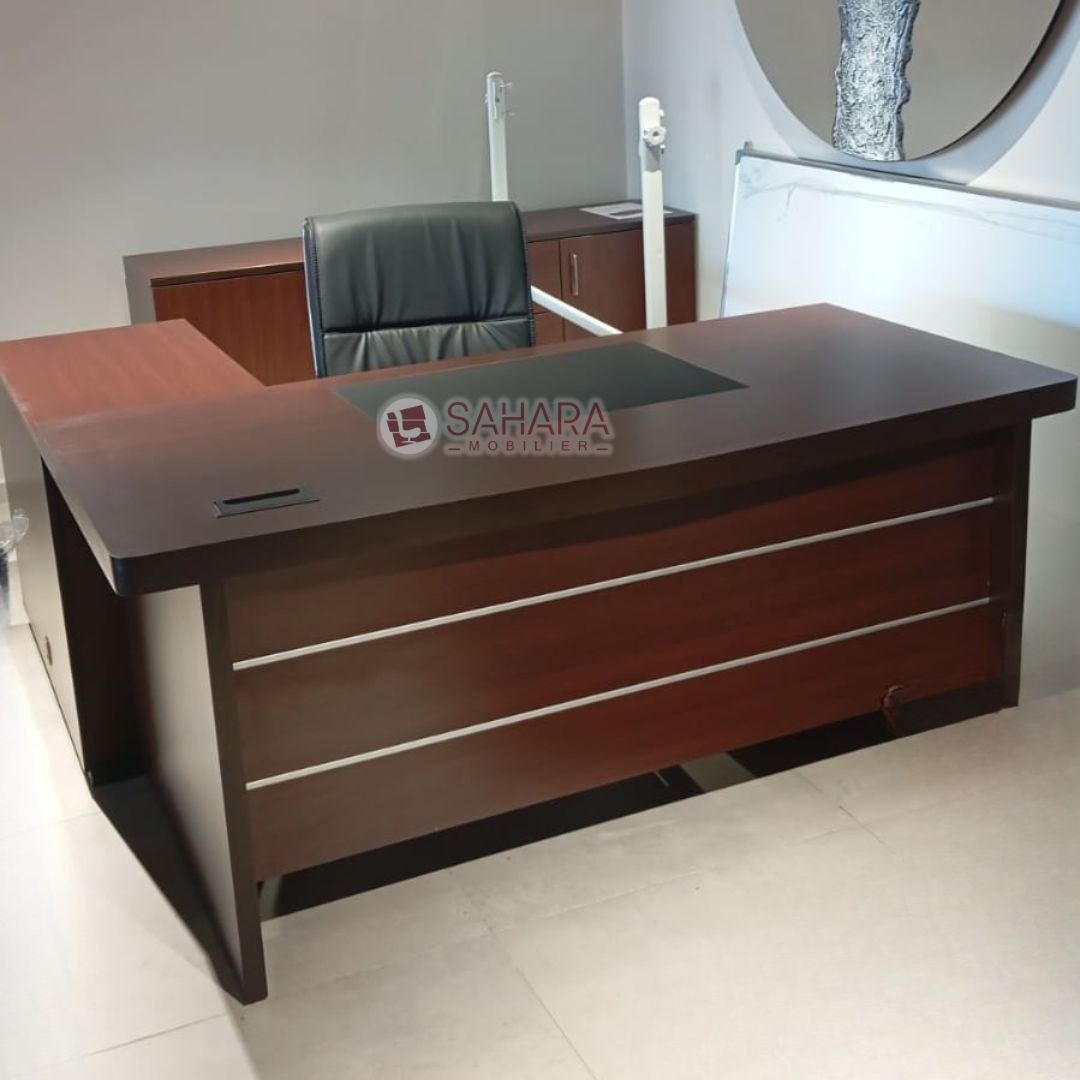 Conçu pour les espaces professionnels haut de gamme, ce bureau présidentiel en placage bois combine esthétique raffinée et fonctionnalité. Son plateau spacieux, ses rangements intégrés et son design élégant en font un choix idéal pour les dirigeants recherchant confort et prestige au sein de leur bureau.