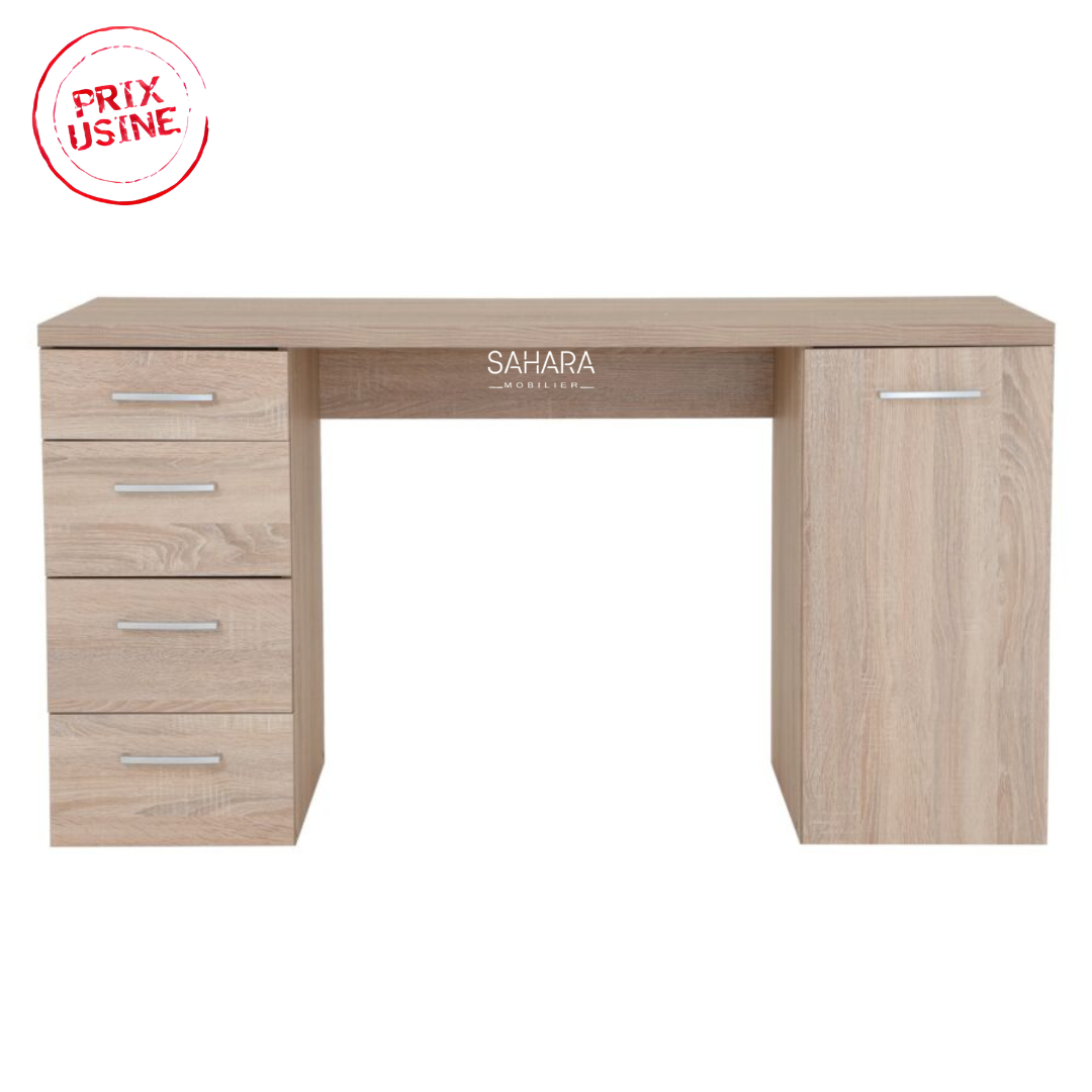 Le bureau demi-ministre 4 tiroirs et 1 porte est sobre et épuré. Convenant à tous les styles de décoration, il trouvera naturellement sa place dans votre intérieur. Doté d'un caisson suspendu avec 4 tiroirs, il est idéal pour ranger les documents importants. En plus d’être esthétique, ce bureau offre des espaces de rangements à votre chambre ou à votre bureau.