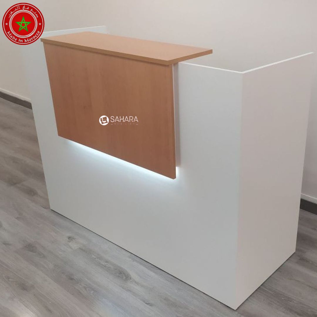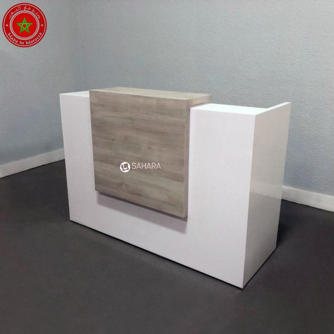 Ce comptoir est idéal pour les espaces d'accueil en boutiques ou administrations, offrant fonctionnalité et esthétique pour une réception efficace des visiteurs.
