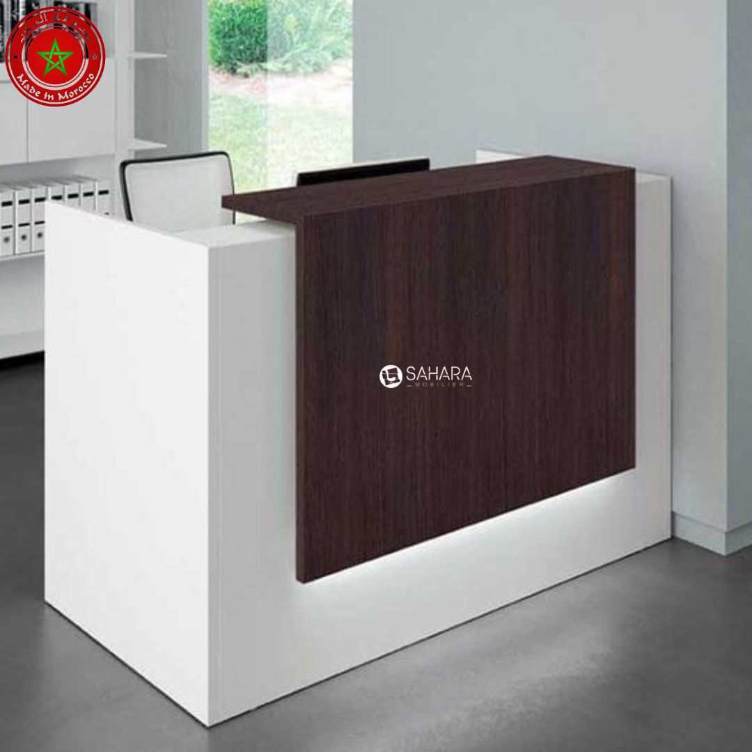 Design : Bureau d'accueil avec tiroirs fixes, disponible en plusieurs dimensions pour s'adapter à divers espaces.