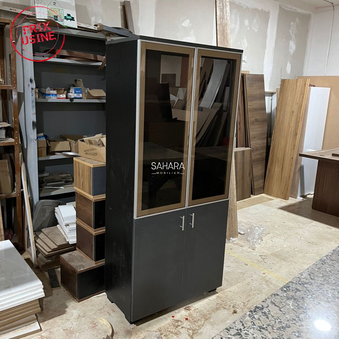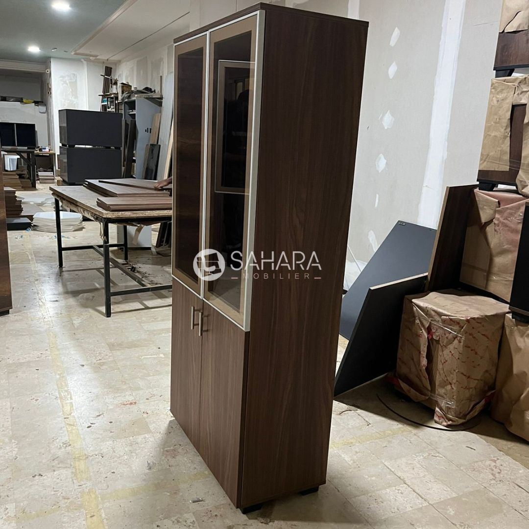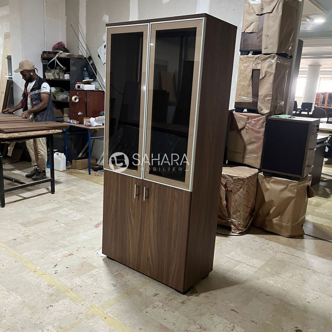 Armoire bibliothéque en bois avec 2 étagères et deux portes battantes