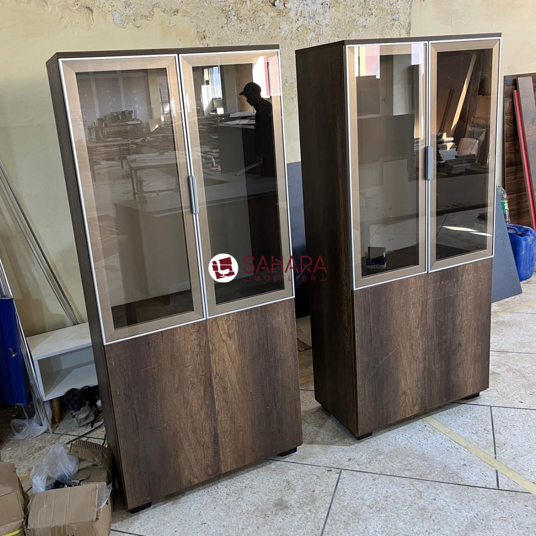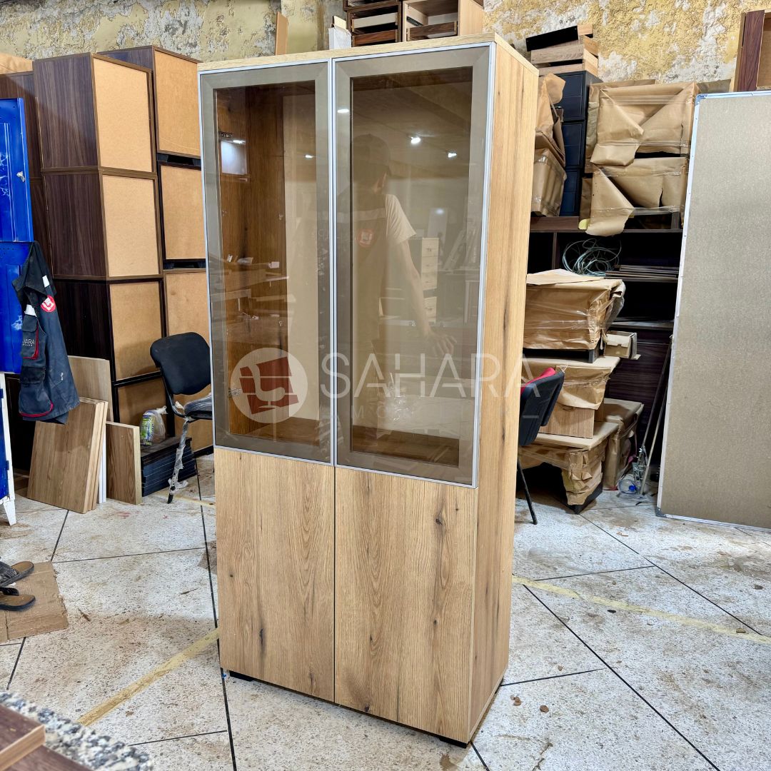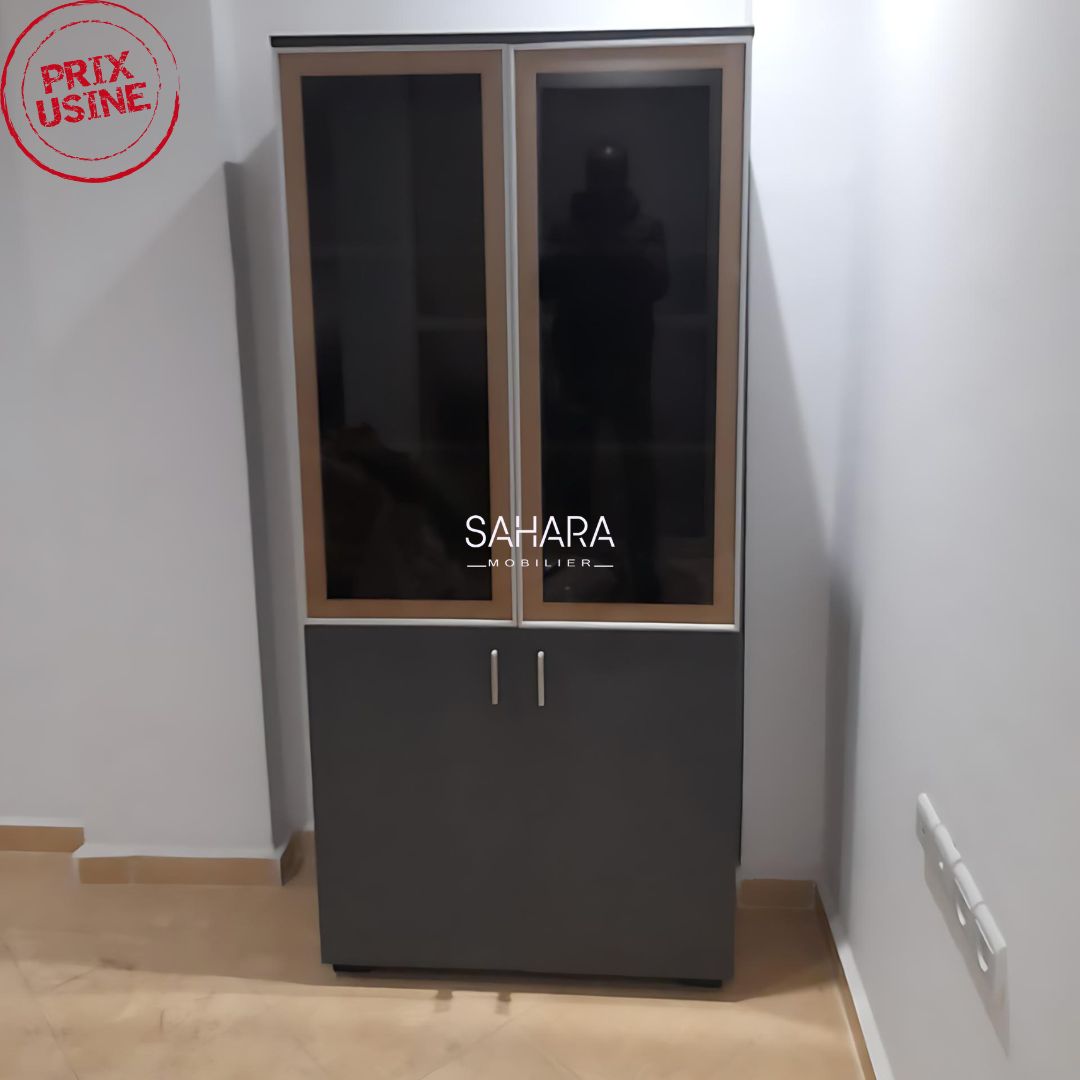 Armoire bibliothéque en bois avec 2 étagères et deux portes battantes