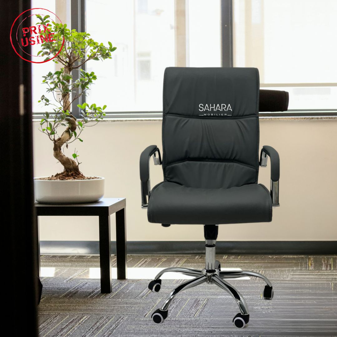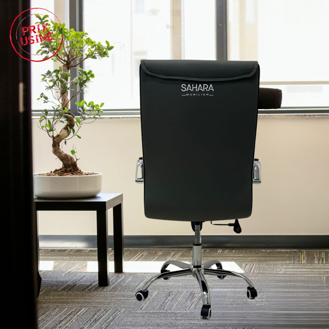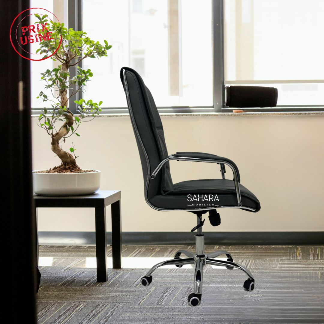 Fauteuil Président Master en cuir synthétique, conçu pour les professionnels. Confort élevé avec un dossier haut et des accoudoirs rembourrés.